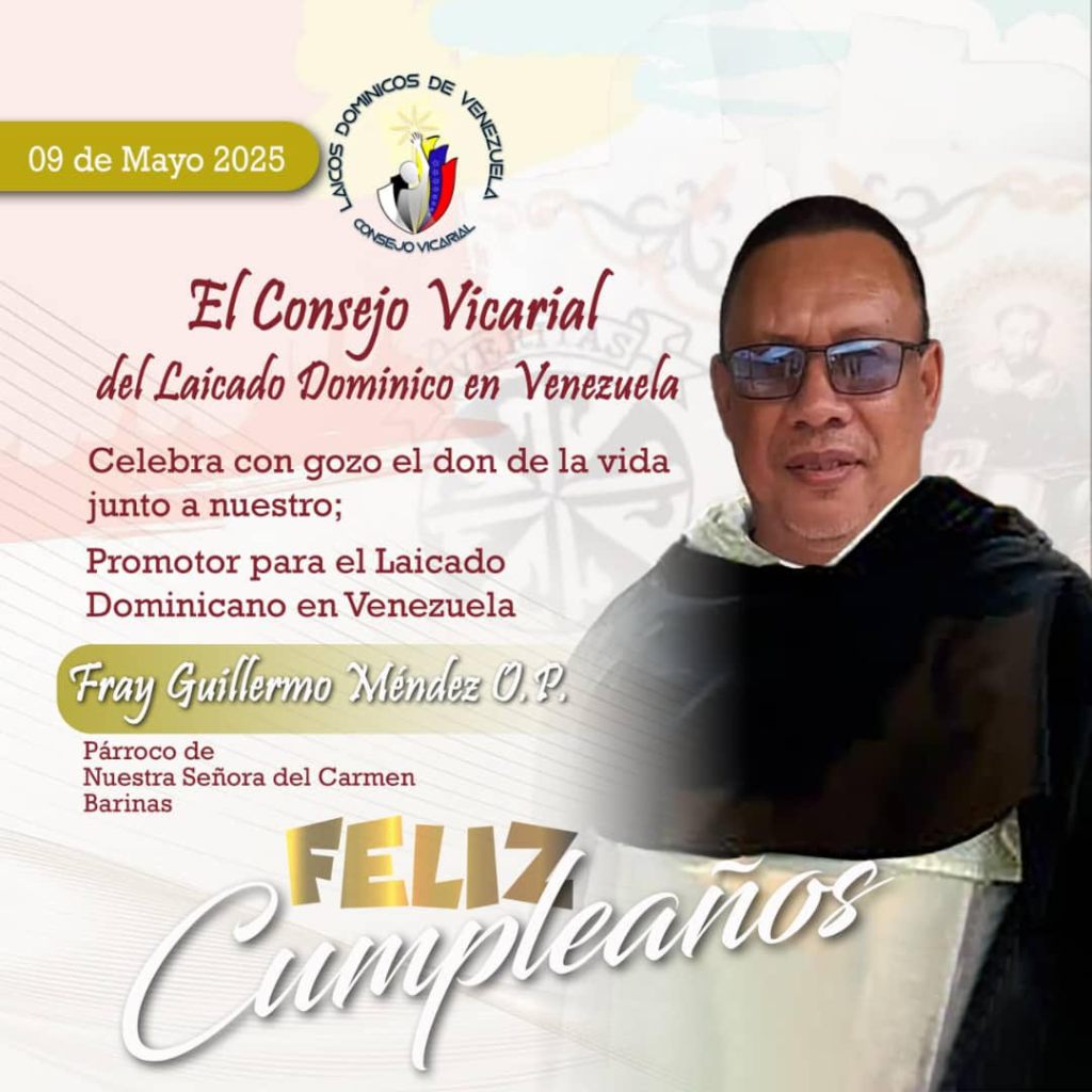 9 de mayo de 2025 rosarioconcafeina Fray Guillermo Feliz Cumpleaños. El señor le conceda muchos años cargados de excelente salud y le permita perseverancia en su ministerio. Comparte esto: Compartir en X (Se abre en una ventana nueva) X Compartir en Facebook (Se abre en una ventana nueva) Facebook Email a link to a friend (Se abre en una ventana nueva) Correo electrónico Compartir en WhatsApp (Se abre en una ventana nueva) WhatsApp Me gusta Cargando... Relacionado